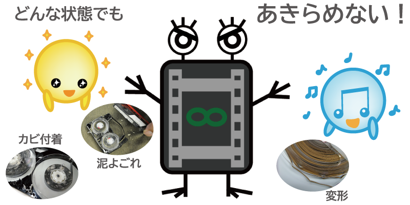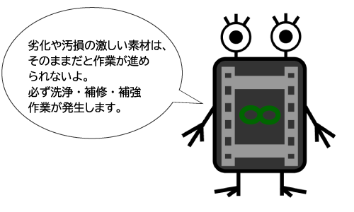 ※テープやフィルムの劣化状態により、洗浄・補修・補強作業が発生いたします。