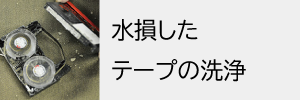 東日本大震災にて罹災したminiDVテープのクリーニング作業の様子です。真水を被った状態とは異なり、泥なども含まれています。