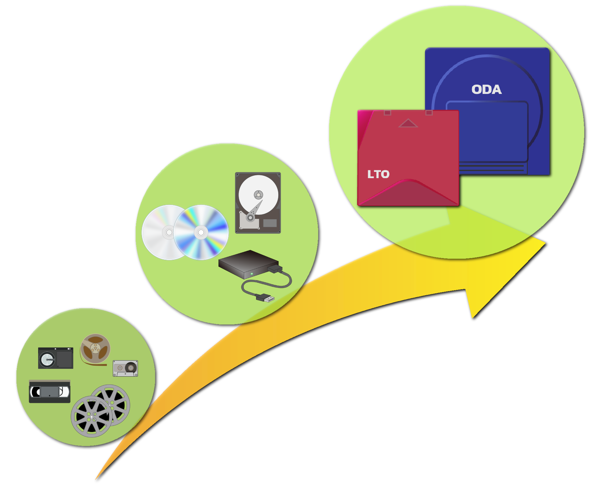 視聴覚資料は時代とともにフィルム、磁気テープ、ディスクメディア、データ形式と形を変えてきました。