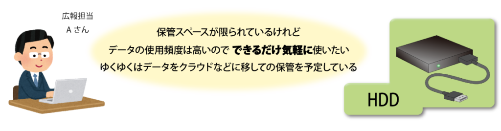 ここではデータ保存の方針に合わせたメディア例と各種メディアの特徴を紹介します。